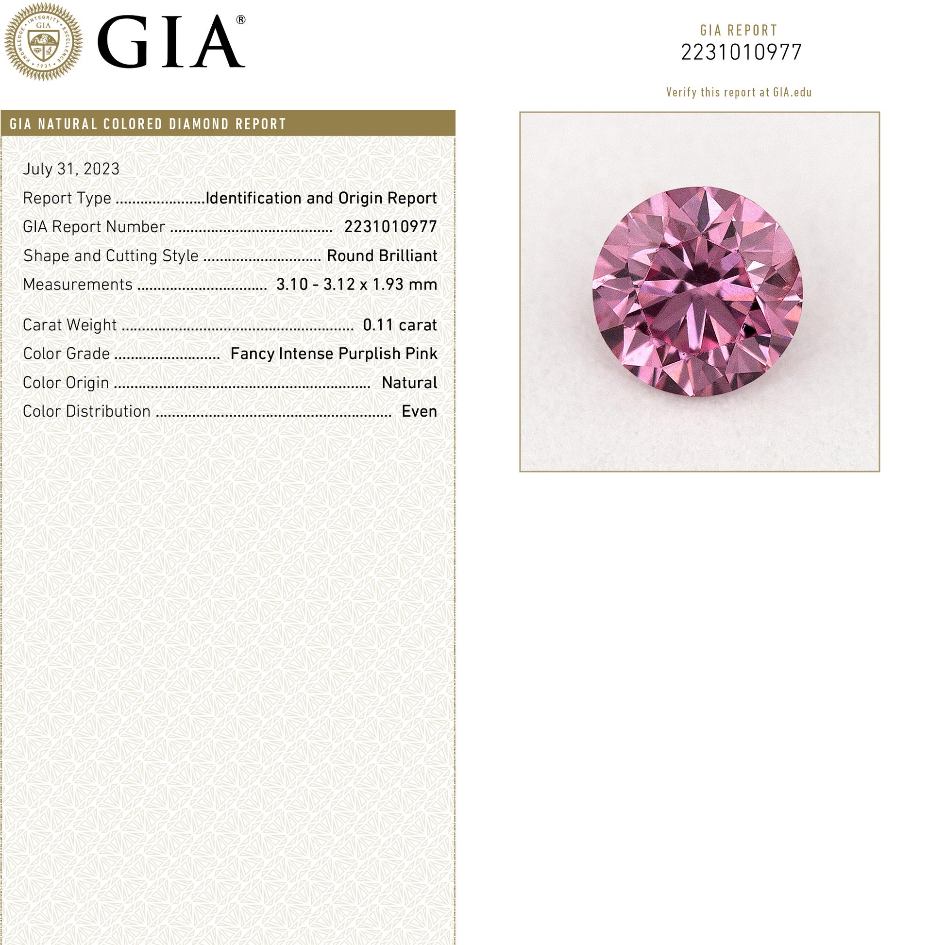 GIA Certified 0.11ct Fancy Intense Purplish Pink Natural Argyle Pink Diamond Round Brilliant VS1